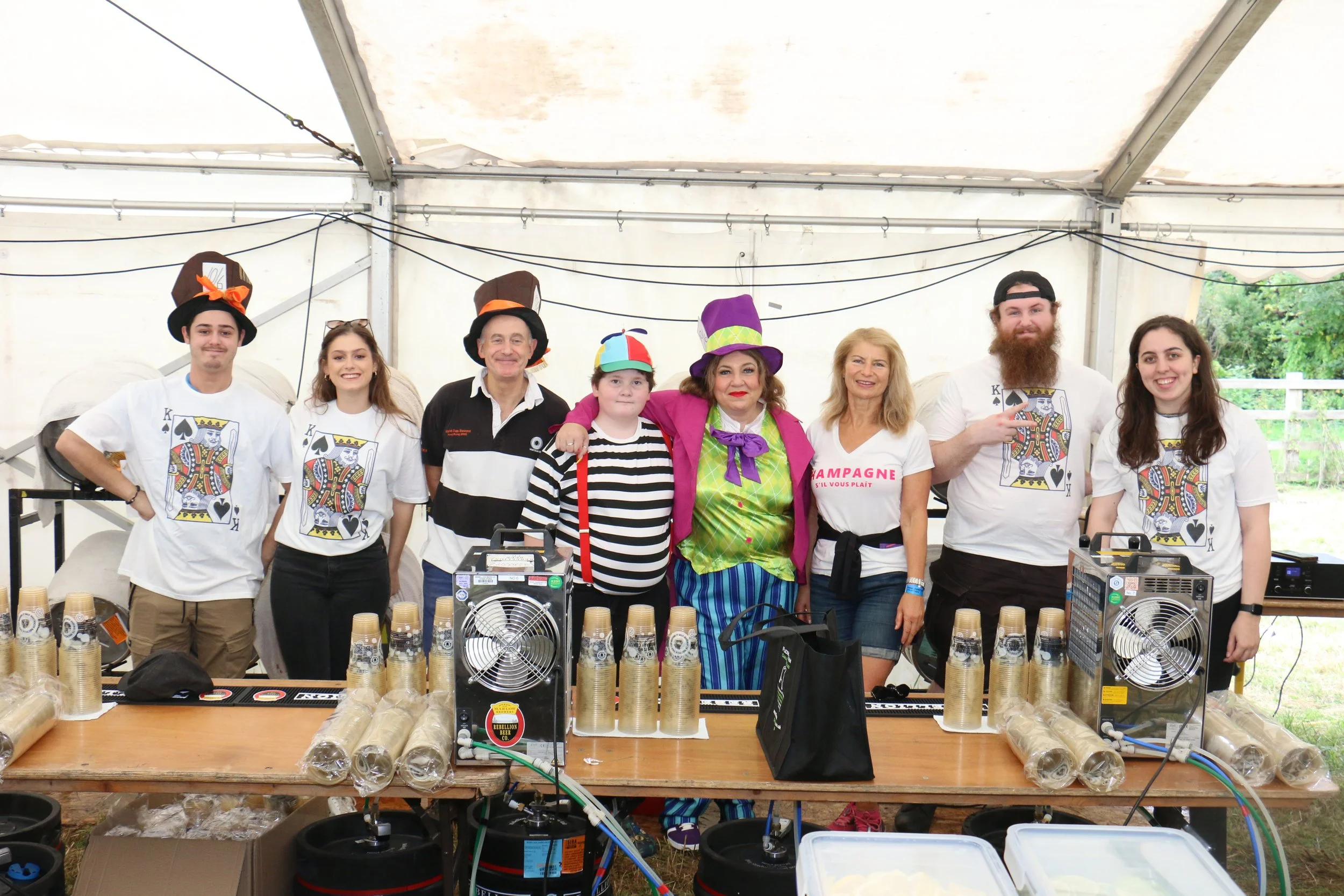 The bar area outside and our bar staff attired to complement the theme of the show - 2023 Mad Hatters Tea Party
